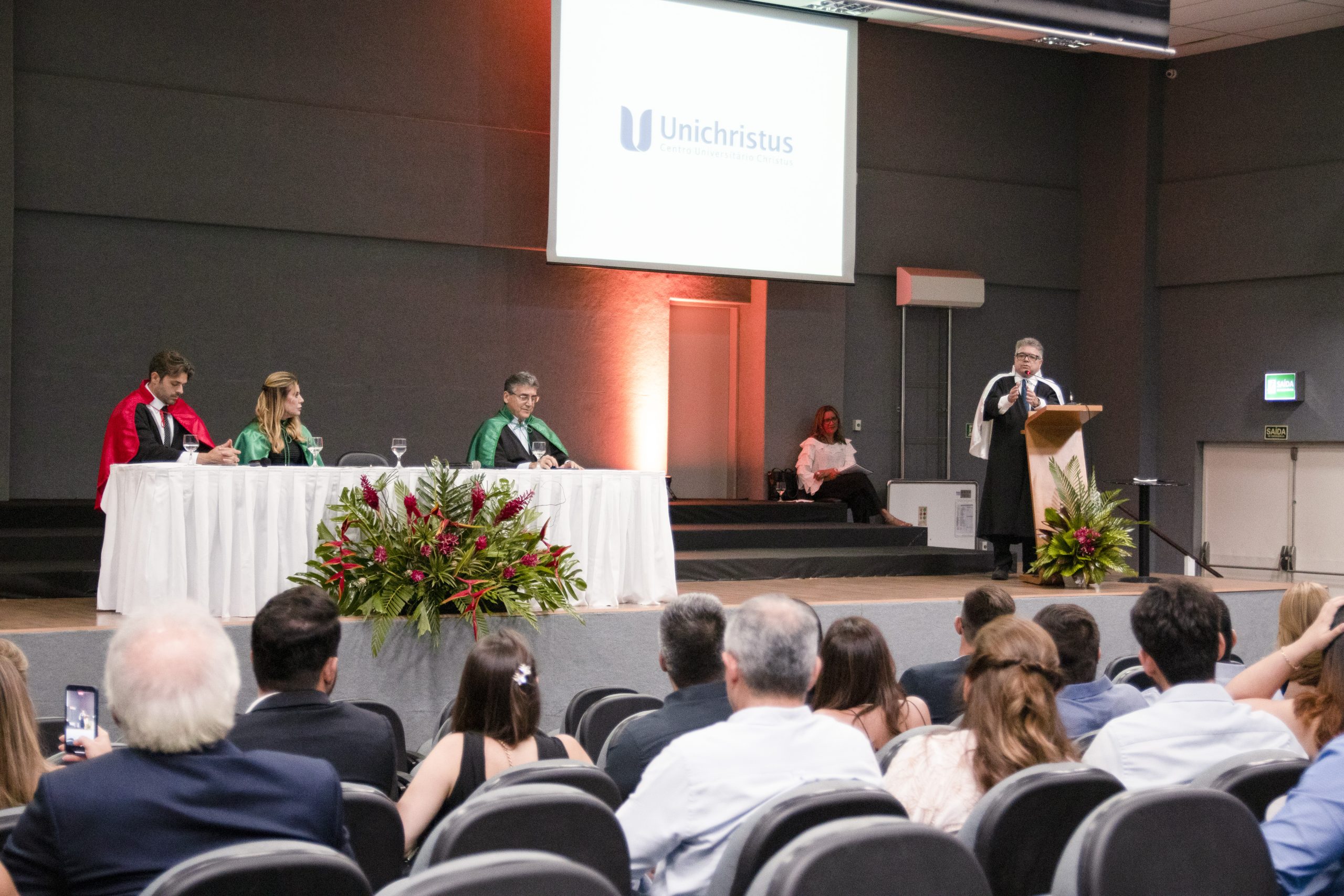 Estiveram presentes na cerimônia o magnífico Reitor do Centro Universitário Christus- Unichristus – Dr. José Lima de Carvalho Rocha, o Pró-Reitor de Extensão – Murilo Brasil de Carvalho Rocha e o Pró-Reitor de Pós-Graduação e Pesquisa, Dr. Marcos Kubrusly, além dos coordenadores e professores da Instituição.